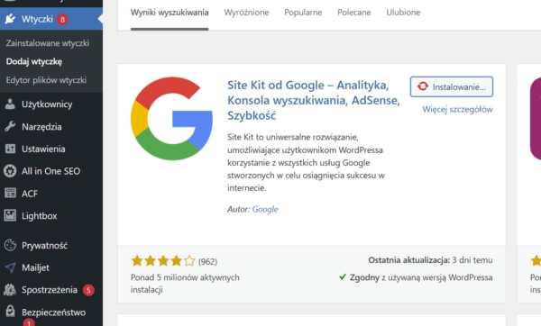 - Site Kit by Google – oficjalna wtyczka, która może dodać GTM i inne usługi Google.