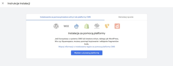 Kolejny etap to instalacja wygenerowanego kodu GTM w WordPressie. Można to zrobić ręcznie: