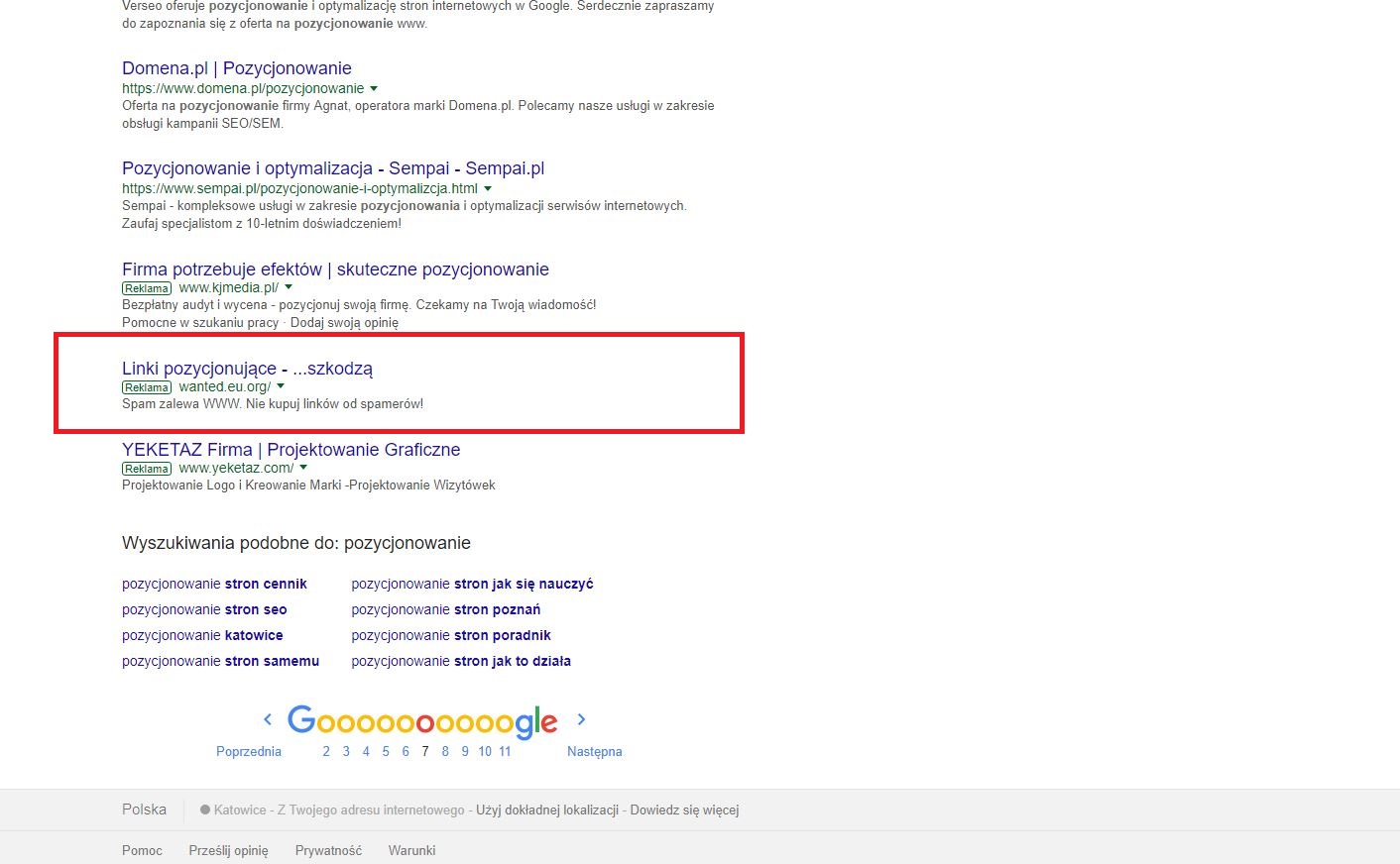 Dziś zobaczyliśmy w wynikach AdWords reklamę naszej strony z starego konta – nieużywanego przez 2 lata. Po szybkiej weryfikacji okazało się, że na koncie było niewiele ponad 1 złotych. Nasze zdziwienie było bardzo duże… ale jeszcze większe było po tym jak zobaczyliśmy inną z reklam.