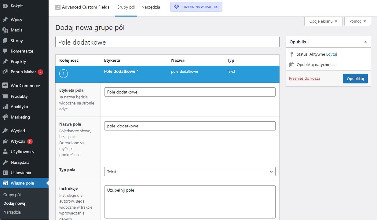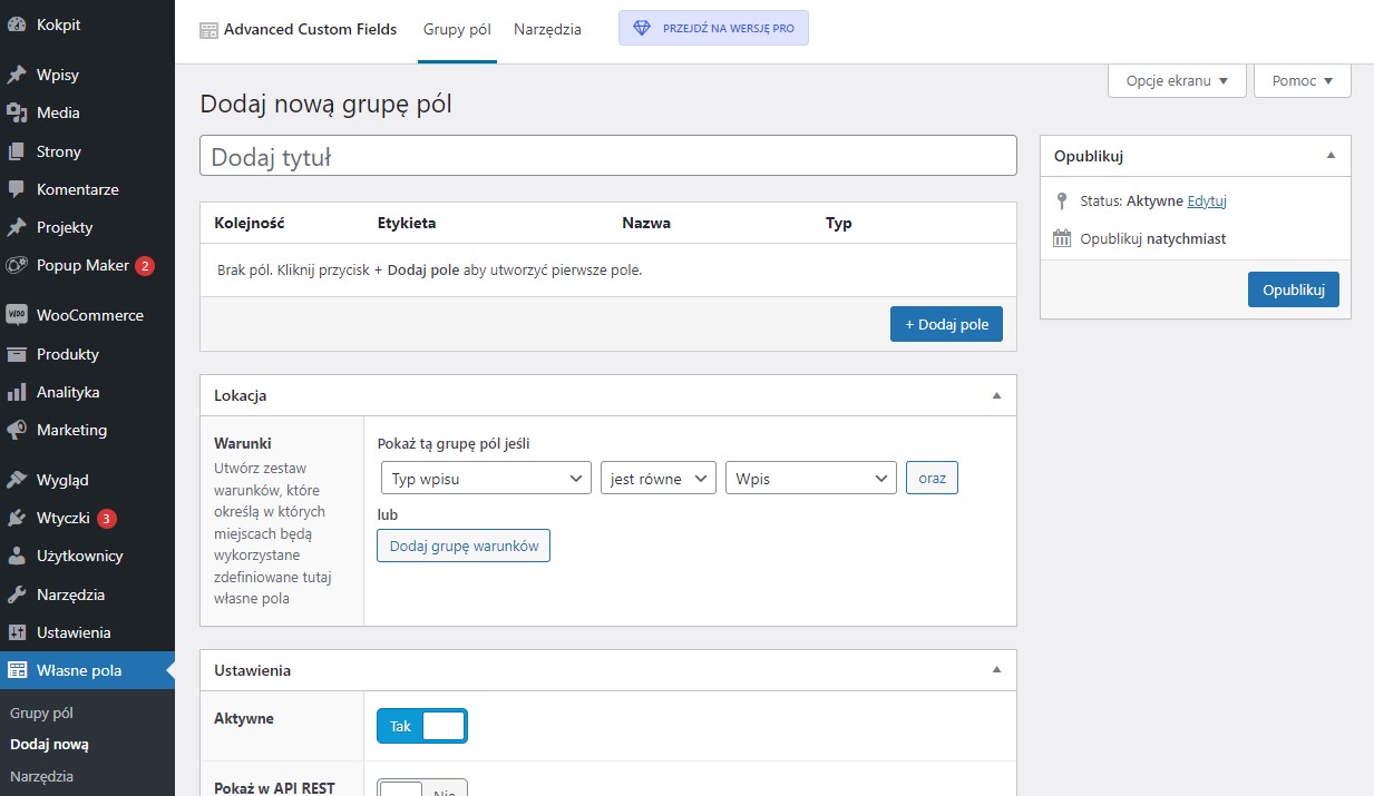 Własne pola w WordPress przy użyciu Advanced Custom Fields