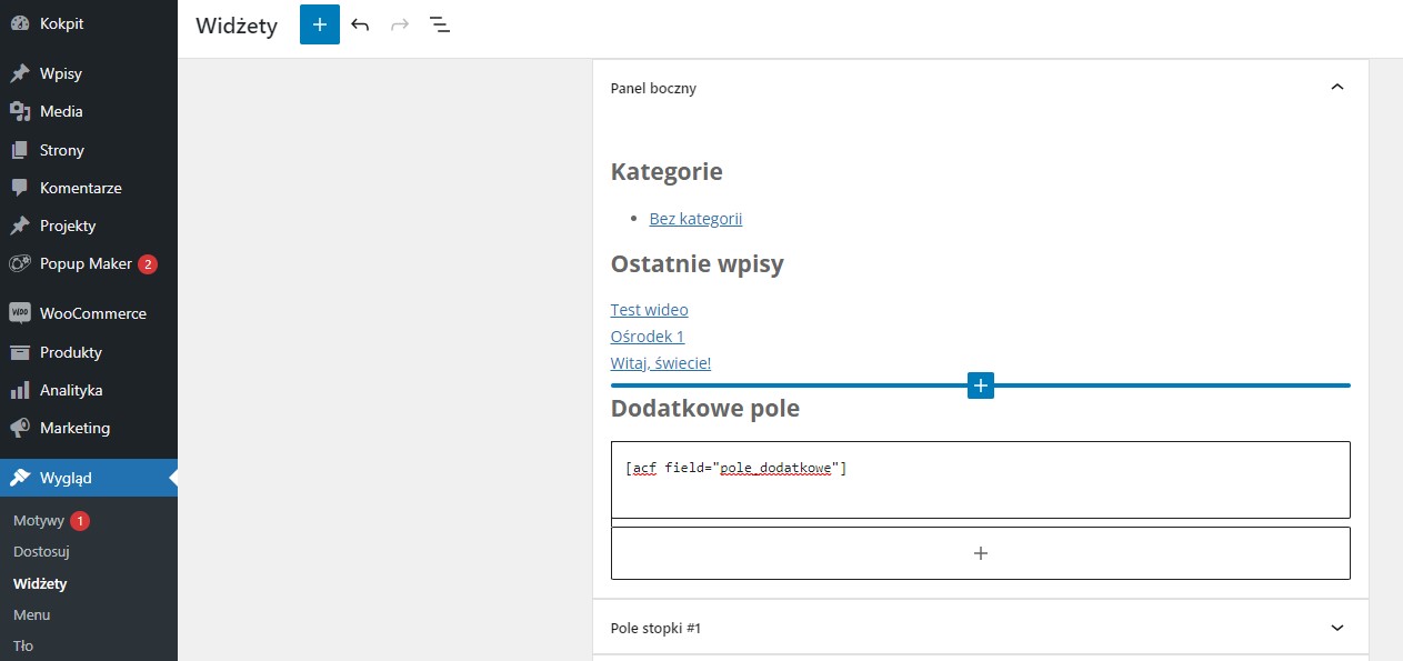W prawej belce dodałem shortcode: [acf field=”pole_dodatkowe”].